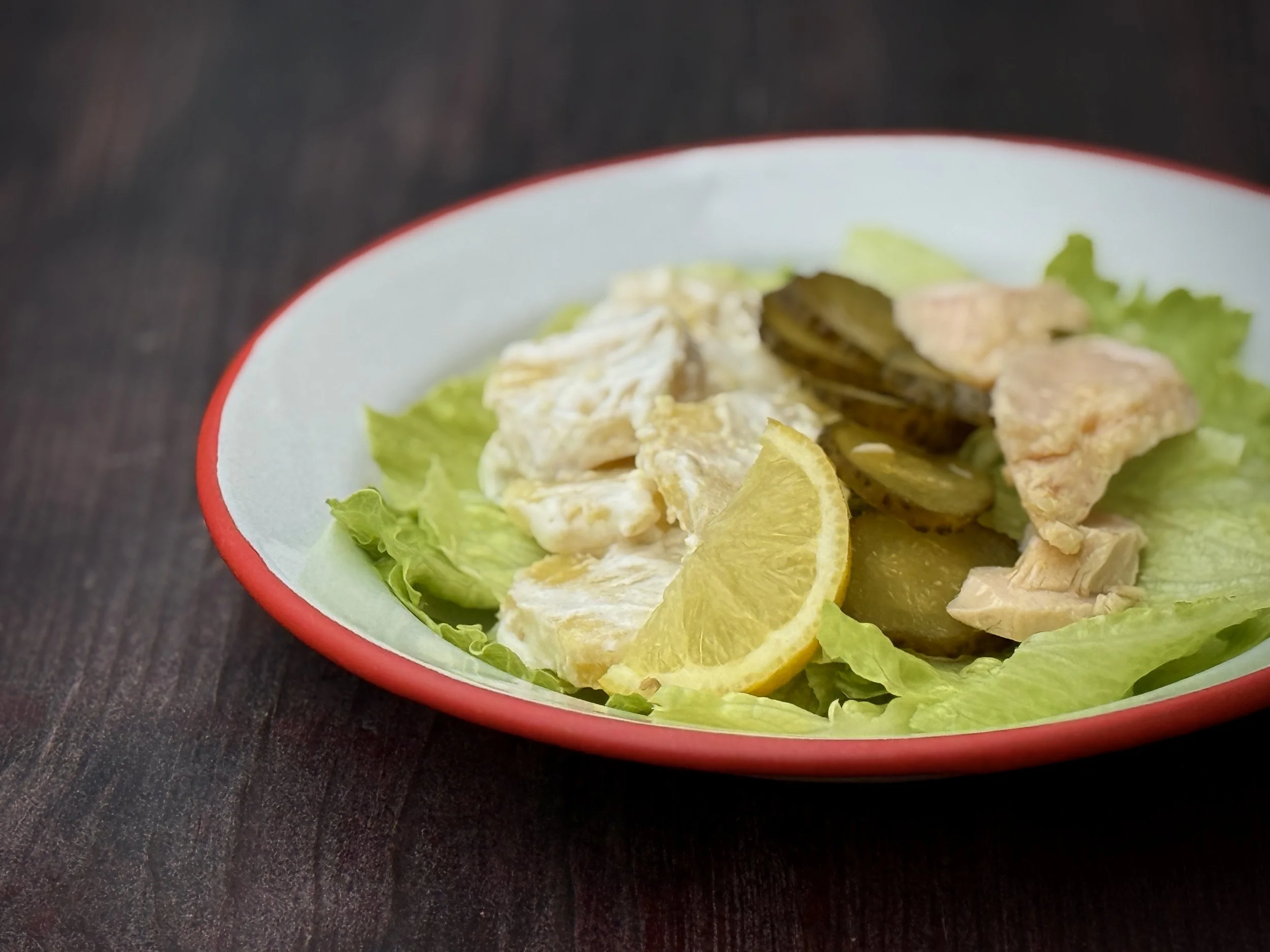 Place the lettuce on the bottom of the serving plate.