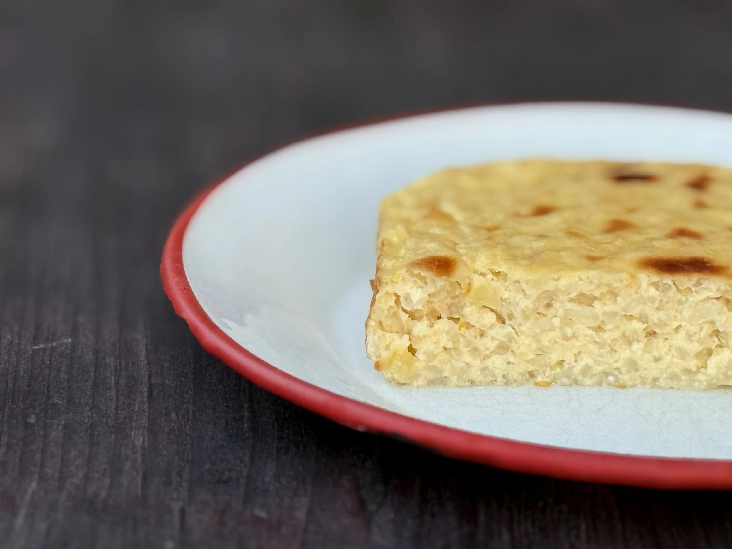 Gently cut the “risotto pie” into portions, and serve warm with a drizzle of honey.